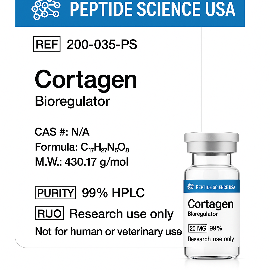 Cortagen is a bioregulatory peptide with primary effects in the brain and central nervous system. It has secondary effects on the immune system and in cardiac tissue. Research shows that it is a powerful regulator of the inflammatory response, particularly in the nervous system, helping to restore balance and proper functioning between pro- and anti-oxidative processes. It has been investigated as a potential treatment following ischemic brain injury where it and similar compounds have shown beneficial long-term results. Cortagen stimulates interleukin-2 expression and helps to regulate immune function primarily by reducing autoimmune reactions.